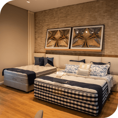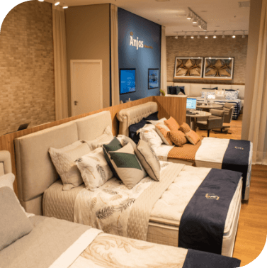 Para o quarto, camas produzidas com tecidos de alta decoração, tecnologia e extremo conforto. Para a sala, um portfólio de sofás em diferentes estilos e formatos que garantem conforto e funcionalidade aos ambientes. Além disso, a Anjos trabalha com parceiros selecionados para a linha de complementos, que surpreendem pelo bom gosto.